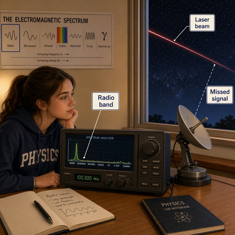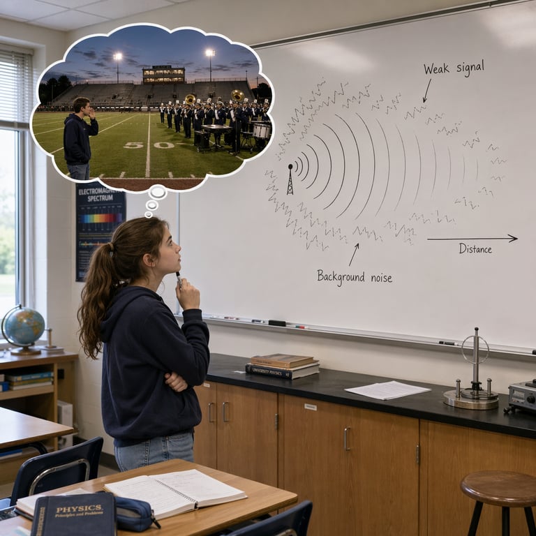 She had assumed we’d notice a cosmic broadcast easily, but the class talked about signal weakness and noise. A radio wave spreads out, fading as distance grows, and space is full of static from stars and human-made interference. Jessica imagined trying to hear a whisper across a football stadium during a marching band rehearsal—possible in theory, brutal in practice.