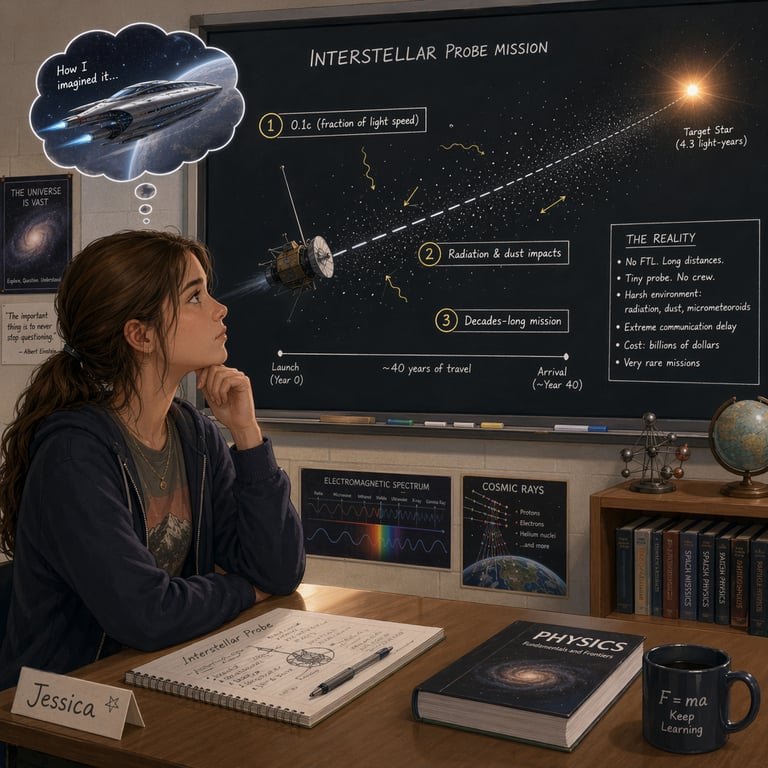 Jessica had pictured sleek ships hopping between stars, but the physics sounded harsh. To reach even a fraction of light speed, a craft needs enormous energy and must survive radiation, dust impacts, and decades-long missions. Even if it’s possible, it might be so expensive that only rare probes are sent, leaving most systems untouched and mostly unaware of one another.
