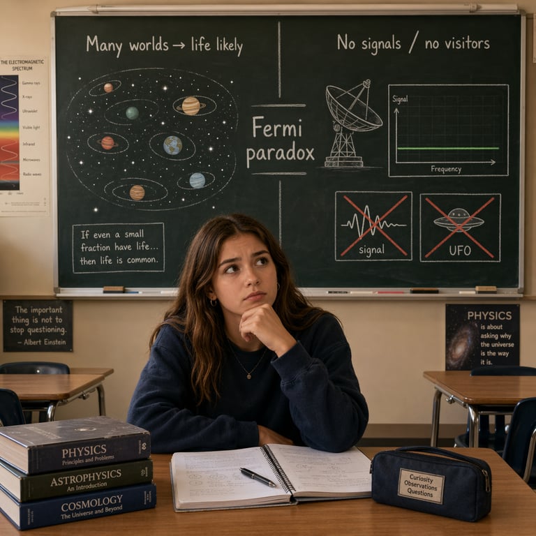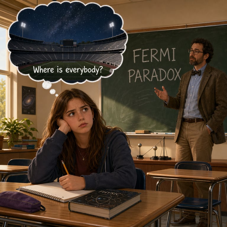 Her teacher called it the Fermi paradox: if the cosmos is huge and old, why doesn’t it look inhabited? Jessica pictured a packed stadium where every seat should have someone, yet the stands were silent. The paradox wasn’t proof that aliens don’t exist; it was a reminder that expectations based on big numbers can crash into the stubbornness of real evidence.