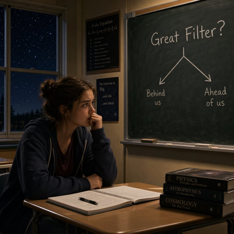 Then came a hypothesis that made her stomach tighten: the Great Filter. Somewhere between dead matter and a spacefaring civilization, there may be a step so unlikely that almost no one passes it. Jessica wondered whether the filter was behind us—like life beginning—or ahead of us—like surviving our own power. The silence could be a warning, or a relief.