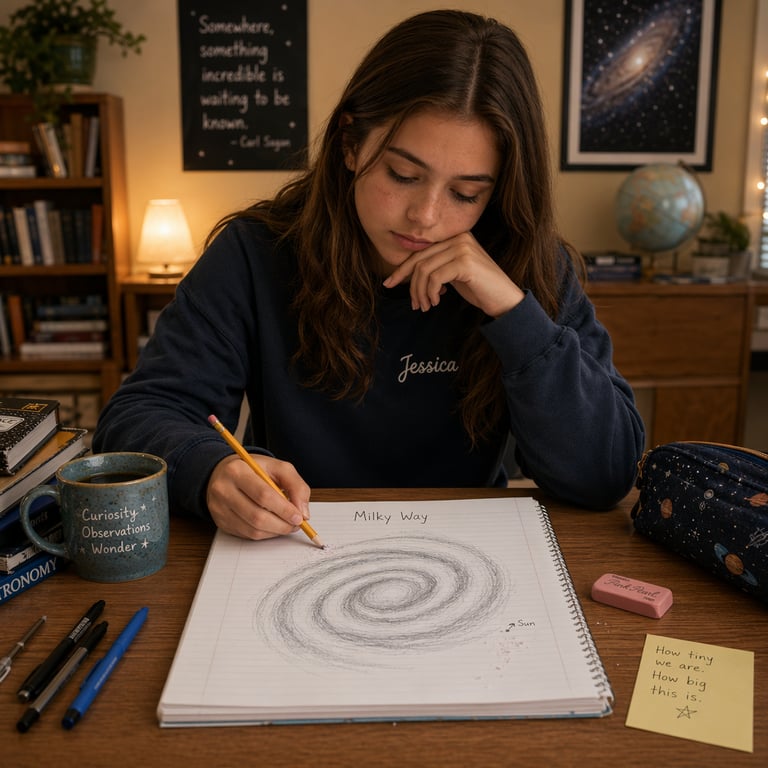 In her notebook, Jessica drew the Milky Way and a tiny arrow from the Sun, then erased it when she realized how meaningless it looked. A galaxy can hold hundreds of billions of stars; exploring it would take immense time even with ambitious expansion. She began to see how “they should be here by now” depends on assumptions about motivation, speed, and persistence.