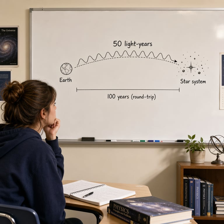 Light itself takes years to cross the gaps between stars, so even a detected signal is a message from the past. Jessica imagined sending “Hello” to a world 50 light-years away and waiting a century for a full conversation. The class discussed trajectories and launch windows, and she realized that space isn’t just far—it’s slow, and slowness changes everything.