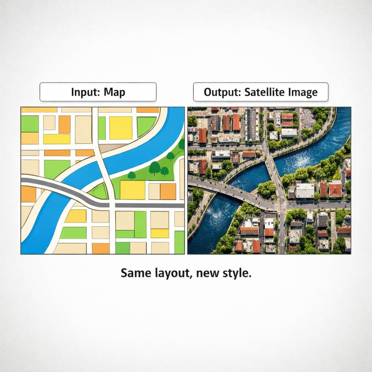 Some GANs translate images from one domain to another, like turning sketches into photos, day into night, or maps into satellite-style images. A simple way to explain it is “keep the structure, change the style.” Include a before/after strip in the slides to show that the model preserves layout while inventing plausible textures consistent with the input.