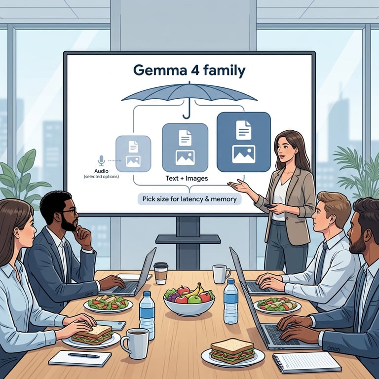She opens by framing Gemma 4 as a family of multimodal Transformer models built to work with text and images, and in some smaller options, audio. The point, she explains, is not one monolith but a shared set of design ideas so teams can choose a size that fits their latency and memory limits without changing paradigms.