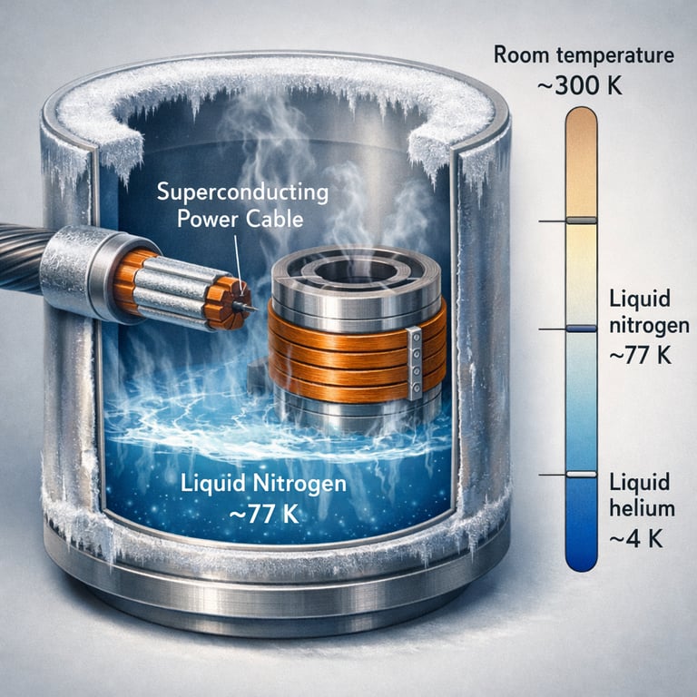 “High-\(T_c\)” superconductors still require cooling, but they can operate with liquid nitrogen (around 77 K), which is cheaper and simpler than liquid helium. This lowers barriers for real-world devices such as power cables and compact magnets. The term “high temperature” is relative—these materials are still far below room temperature, motivating ongoing research.