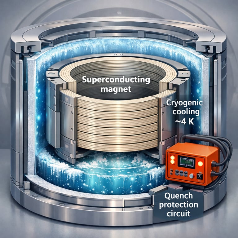 Many superconductors are brittle ceramics that are hard to manufacture into flexible wires, and all require cryogenic systems. If a superconductor suddenly becomes normal (a “quench”), resistance appears and rapid heating can damage equipment, so protection circuits are needed. These engineering challenges explain why superconductors are used where their unique benefits outweigh complexity.