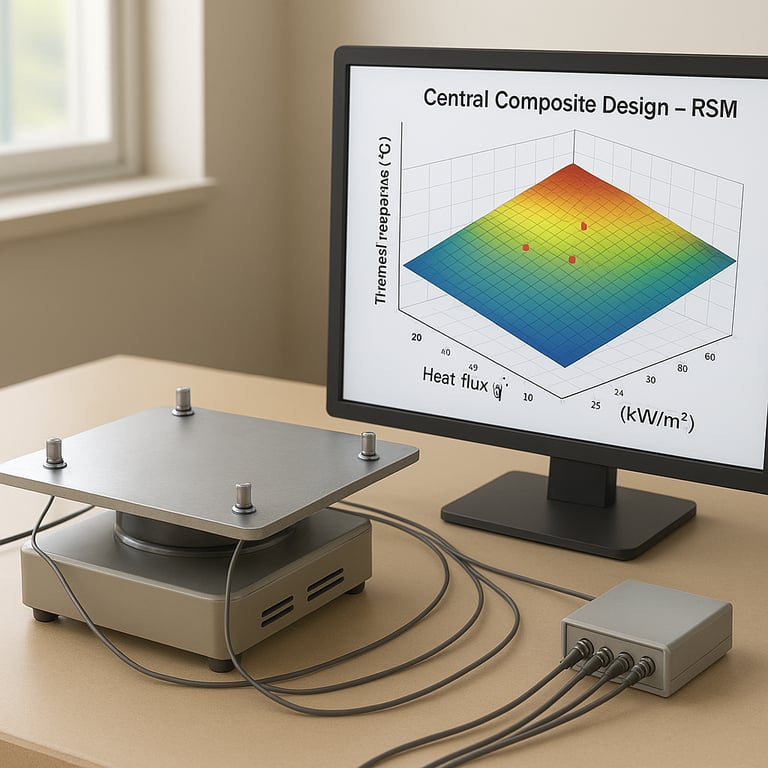 Central Composite Design (CCD) used for RSM experiments with varied heat flux ranges to determine thermal responses.