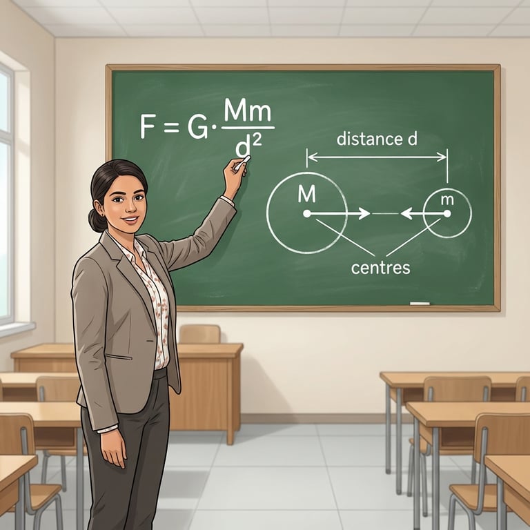 Riya stands before her class and begins with Newton’s big link: the pull that makes an apple drop also reaches far into space, guiding the Moon. She paints gravity as a universal attraction between masses, sometimes subtle, sometimes overwhelming, but always present. By connecting a backyard fall to a lunar orbit, she frames the talk as one story told at two scales.