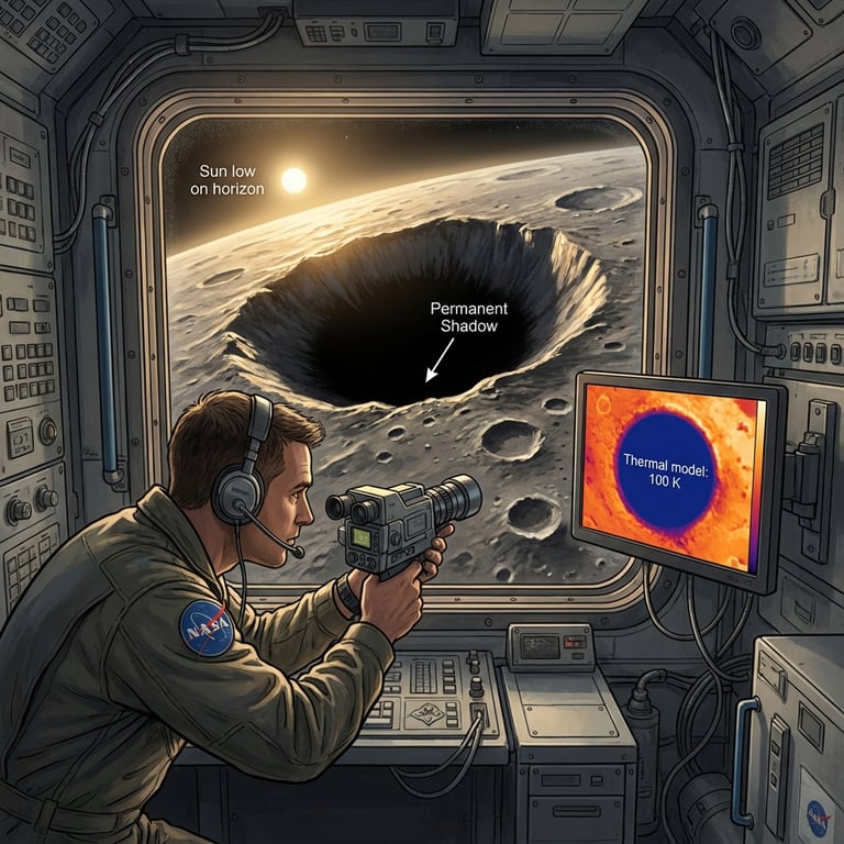He aimed the instruments toward the polar craters where steep walls formed permanent darkness. In those hollows, temperatures stayed brutally low because the Sun skimmed the horizon and never spilled in. Ethan watched the thermal model flatten into deep-blue constants, realizing that in the right geometry, proximity to the Sun didn’t matter—shade did.