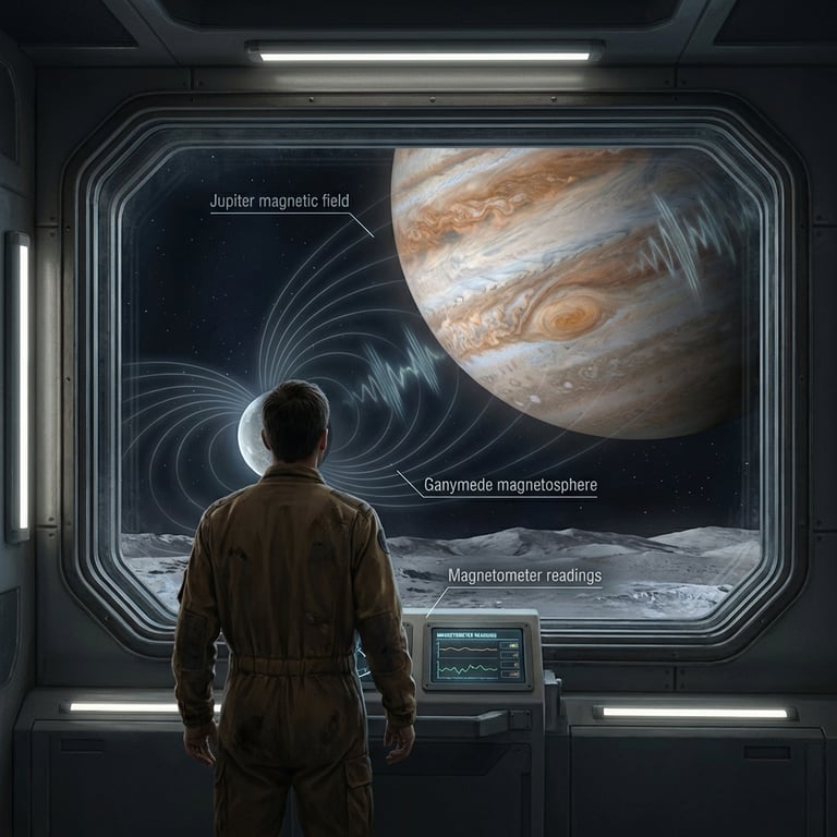 Julien stepped outside to the shielded viewport and imagined field lines threading the dark like luminous ropes. Ganymede was not just a passive rock in a giant’s domain; it carried a magnetosphere of its own, and Jupiter’s rotating field treated it like an instrument in an orchestra, forcing resonances, sparks, and waves. The difference in his readings was Ganymede speaking back.