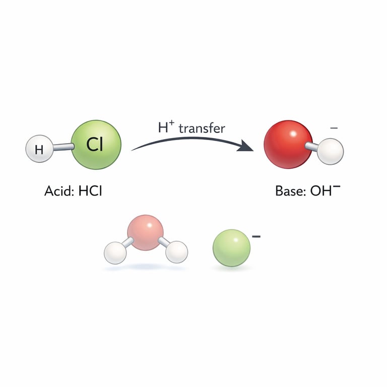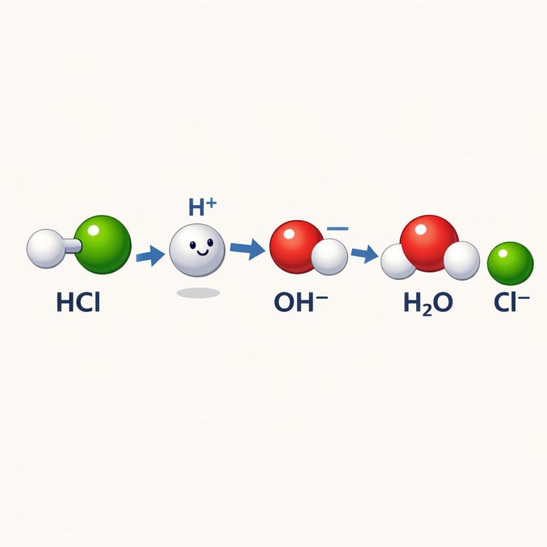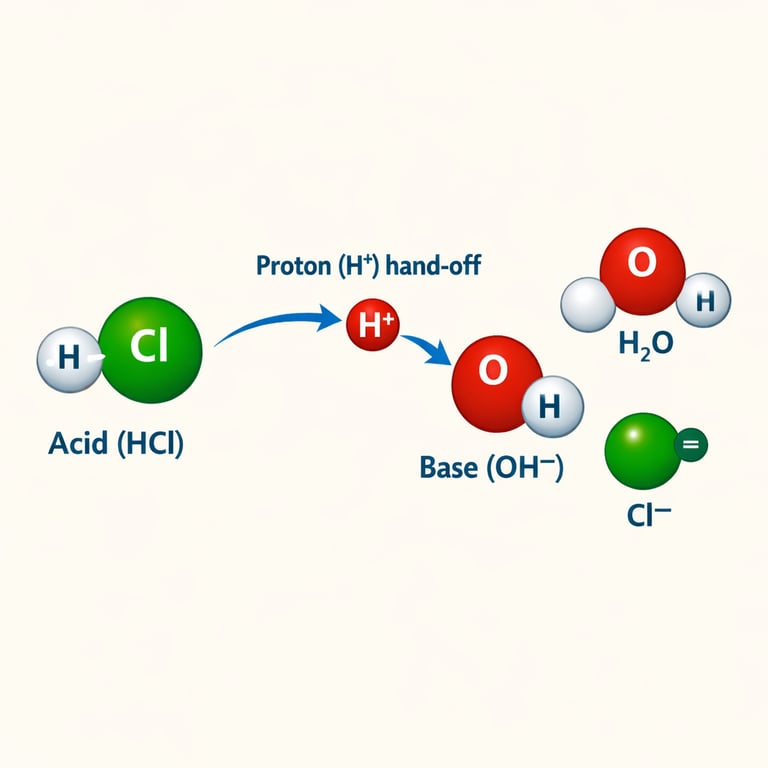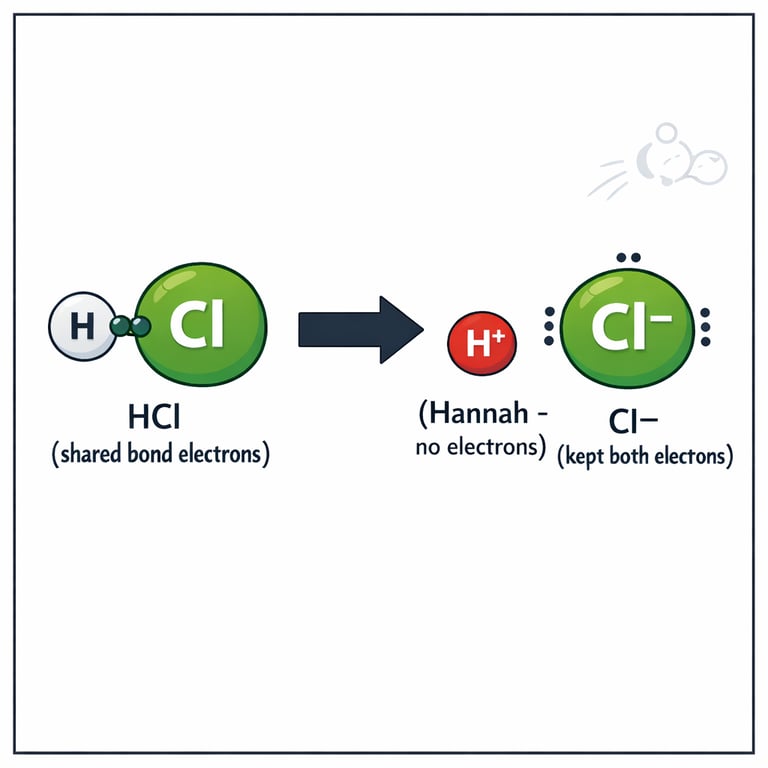 In the tiny town of Waterdrop, two students—Hannah Hydrogen and Oliver Oxygen—hold hands in a water molecule. Nearby lives Hydro the Hydrochloric Acid, who has a “spare” hydrogen he’s ready to give away, and Bina the Base, a hydroxide ion that really wants a hydrogen. This story follows one simple trade: a proton moves, charges change, and a new bond forms.