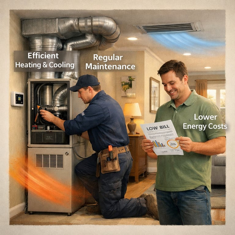 Guide to selecting and maintaining efficient heating and cooling systems, with a focus on energy efficiency, system sizi ...