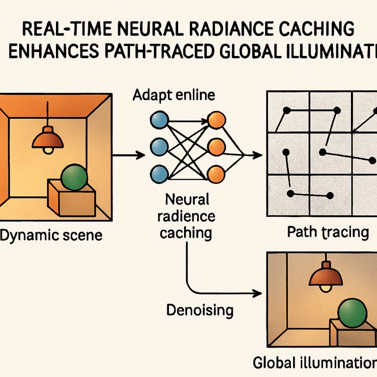 Real-time neural radiance caching enhances path-traced global illumination by adapting neural networks online, reducing ...