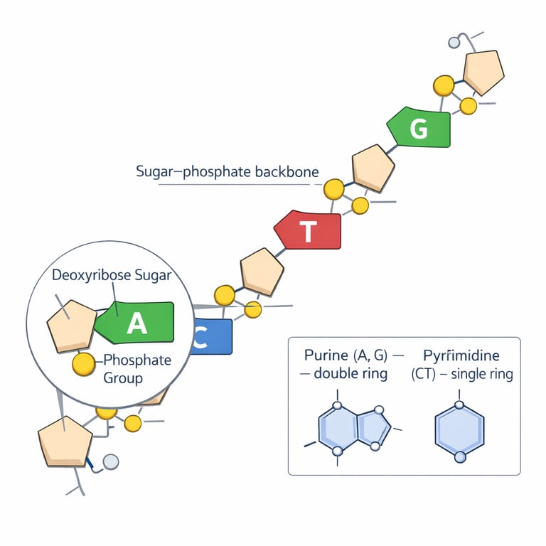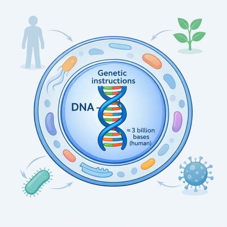 Deoxyribonucleic acid (DNA) is a nucleic-acid polymer that stores genetic instructions used in development, growth, functioning, and reproduction of all known organisms and many viruses. Together with RNA, it forms the class of nucleic acids, one of the four major life macromolecules. DNA’s information content is carried in the order of its bases and can be copied and transmitted between cells and generations.