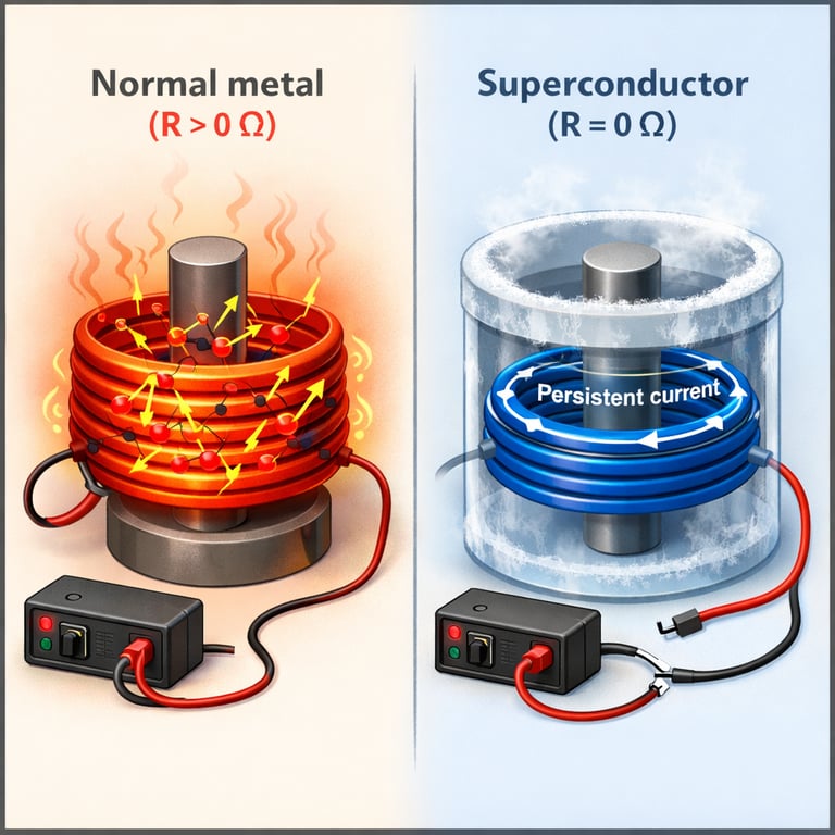 A superconductor is a material that, below a certain critical temperature, enters a special “superconducting state” where electric current can flow without energy loss from resistance. It is not just a very good conductor; it is a different phase of matter with new electromagnetic behavior. This state can be destroyed if temperature, magnetic field, or current become too large.