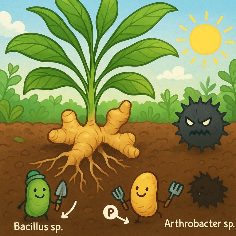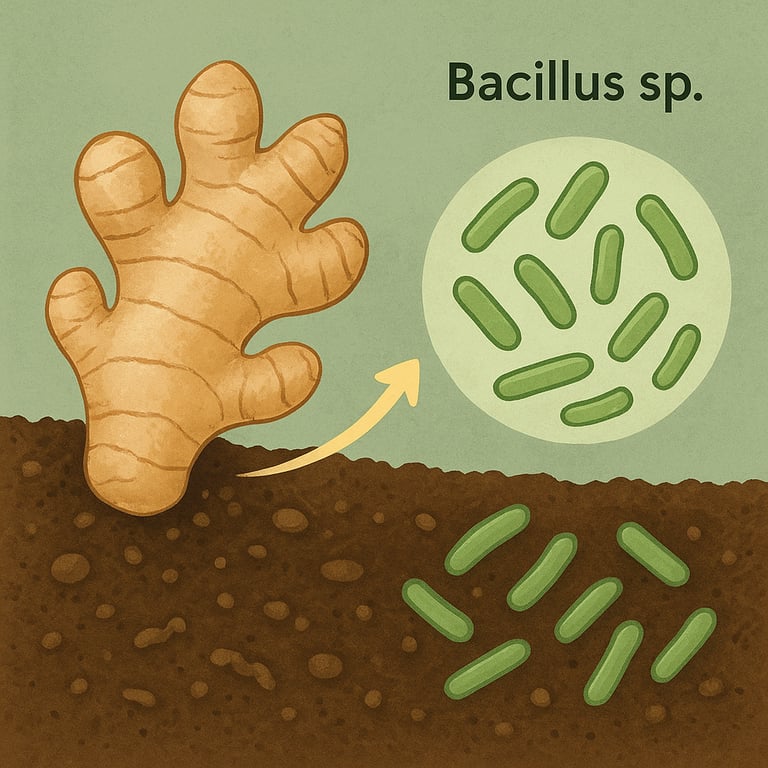 Study of bacterial types around ginger roots identifies beneficial and harmful bacteria, aiding in natural crop protection and growth improvement.