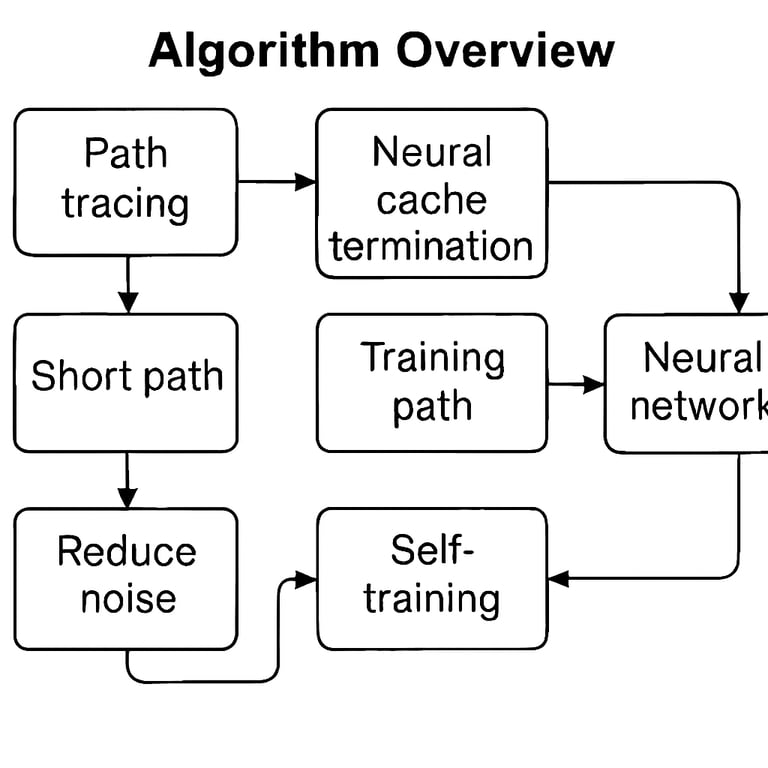 Real-time neural radiance caching enhances path-traced global illumination by adapting neural networks online, reducing noise and bias efficiently in dynamic scenes.