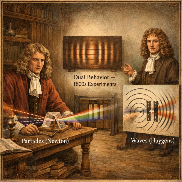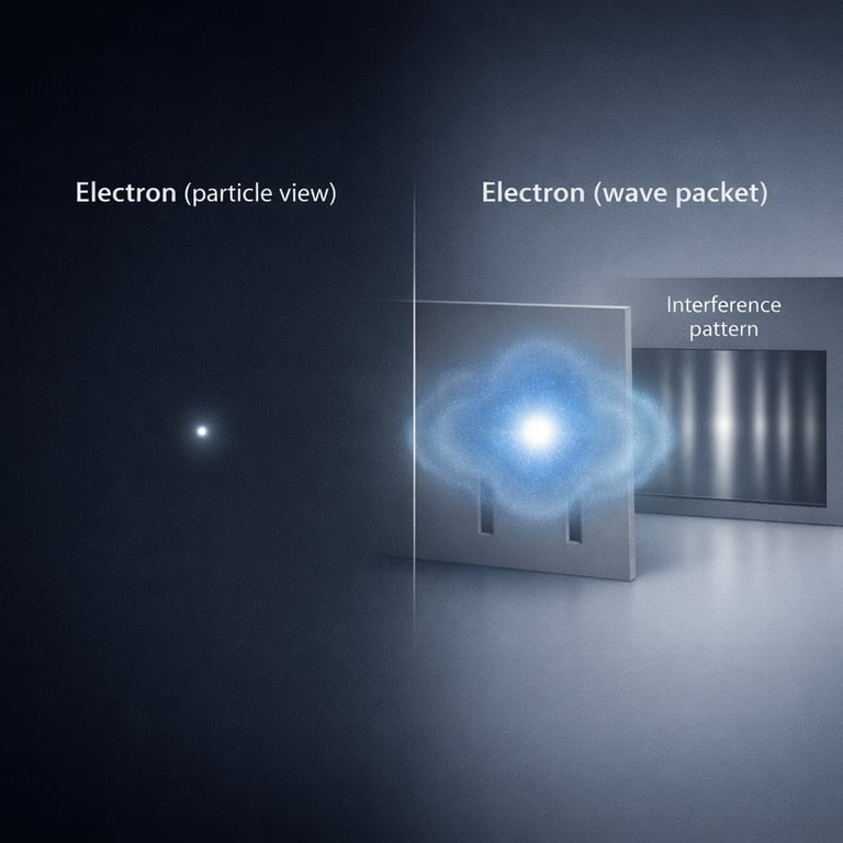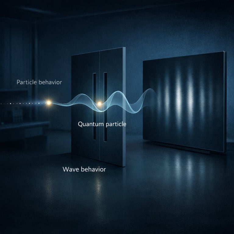 Explore wave-particle duality, a fundamental concept in quantum mechanics, showing how particles like electrons and photons exhibit both wave and particle properties depending on the experiment.