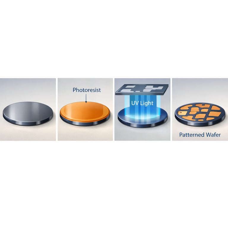 Photolithography uses light to transfer patterns onto a silicon wafer for semiconductor manufacturing. It involves various stages such as cleaning, coating, exposure, and etching, enabling precise fabrications in microelectronics.